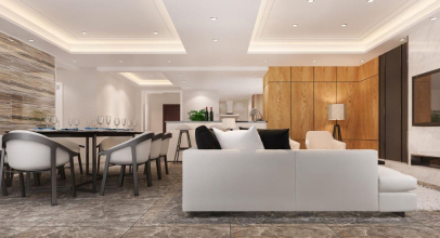 Біла натяжна стеля доречна у вітальні, спальні, дитячій і на кухні — за умови грамотного підбору освітлення.